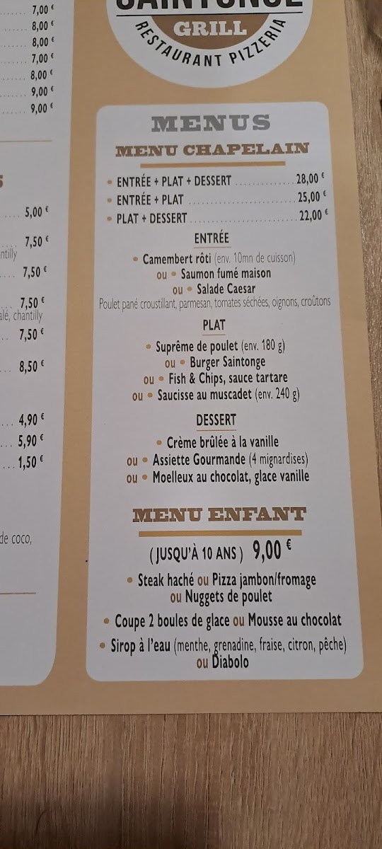 LE SAINTONGE GRILL Menu